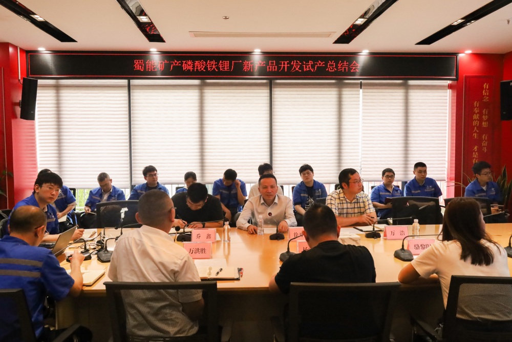 ? ? ? ?5月13日,蜀能礦產(chǎn)召開磷酸鐵鋰廠新產(chǎn)品開發(fā)試產(chǎn)總結(jié)會。蜀能礦產(chǎn)公司董事長、總經(jīng)理徐開貴出席會議并講話。