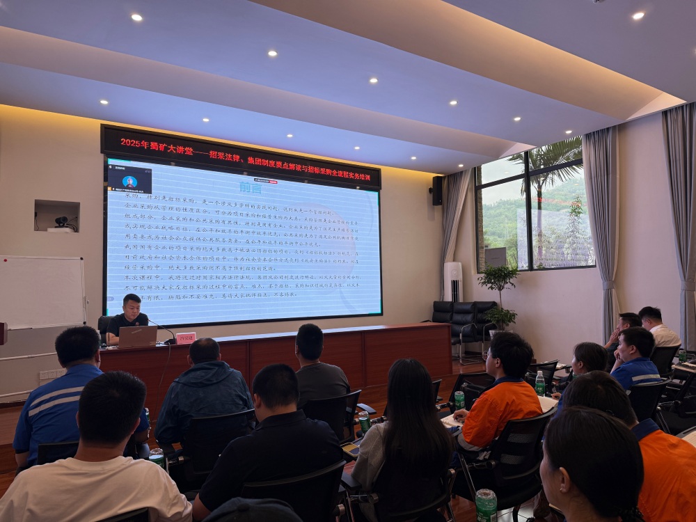? ? ? ?6月24日,公司組織開展“蜀礦大講堂——招標(biāo)采購法律、集團(tuán)制度要點解讀與招標(biāo)采購全流程實務(wù)培訓(xùn)”。本次培訓(xùn)由公司生產(chǎn)經(jīng)營部工程與合同管理崗呂昊建授課。