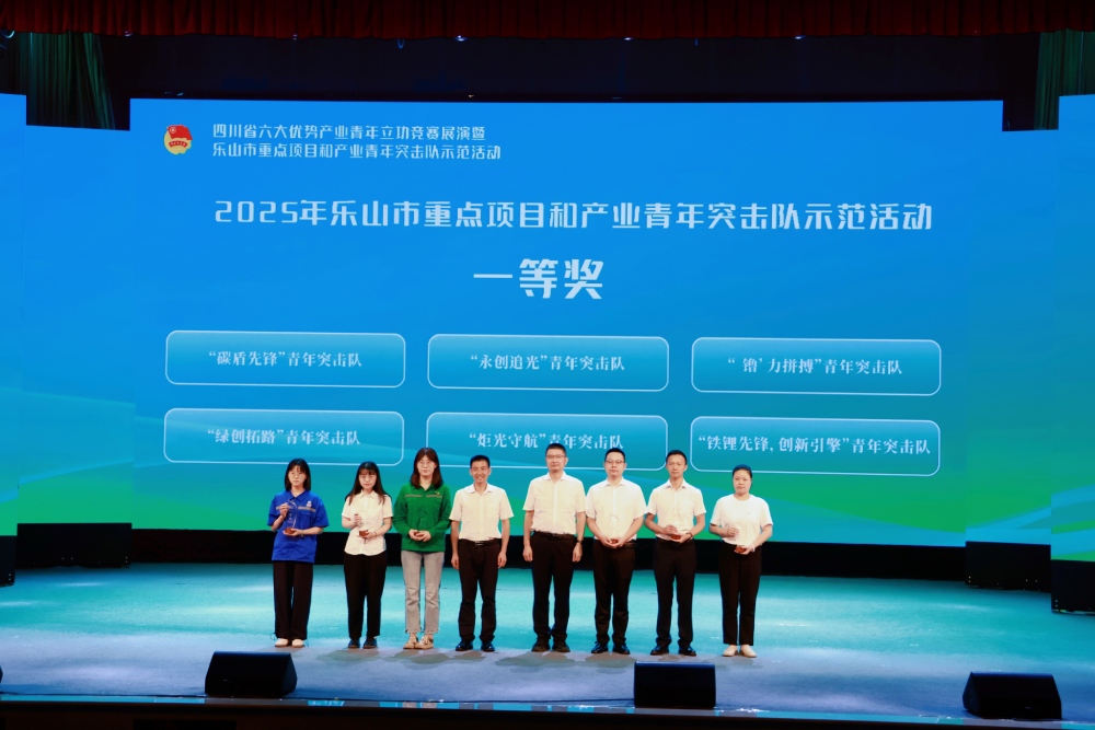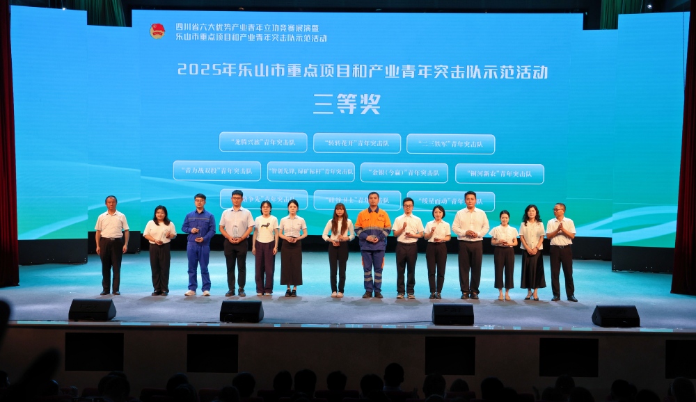 ? ? ? ?7月17日,四川省六大優(yōu)勢產(chǎn)業(yè)青年立功競賽展演暨樂山市重點項目和產(chǎn)業(yè)青年突擊隊示范活動在樂山市夾江縣舉行,蜀能礦產(chǎn)兩支青年突擊隊獲頒兩項市級競賽榮譽:“鐵鋰先鋒,創(chuàng)新引擎”青年突擊隊獲賽育人一等獎,“智創(chuàng)先鋒,綠礦標桿”青年突擊隊獲賽效率三等獎。其中,“鐵鋰先鋒”團隊將代表樂山市出征省級青年立功競賽。