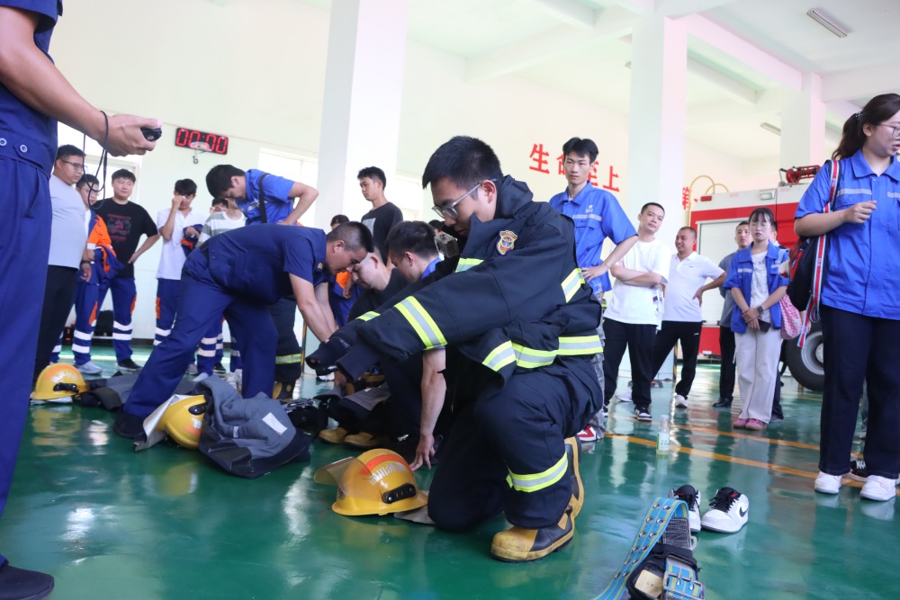 ? ? ? ?接著,為鞏固所學(xué),活動(dòng)特別設(shè)置了緊張激烈的團(tuán)隊(duì)消防技能競(jìng)賽環(huán)節(jié)。員工們分成三支隊(duì)伍,在模擬火場(chǎng)環(huán)境中展開競(jìng)技。競(jìng)賽以“消防服穿戴”“滅火器精準(zhǔn)滅火”為核心項(xiàng)目,裁判組根據(jù)操作規(guī)范性、反應(yīng)速度和滅火效果進(jìn)行評(píng)分。大家在實(shí)戰(zhàn)中進(jìn)一步強(qiáng)化協(xié)作與應(yīng)急能力。