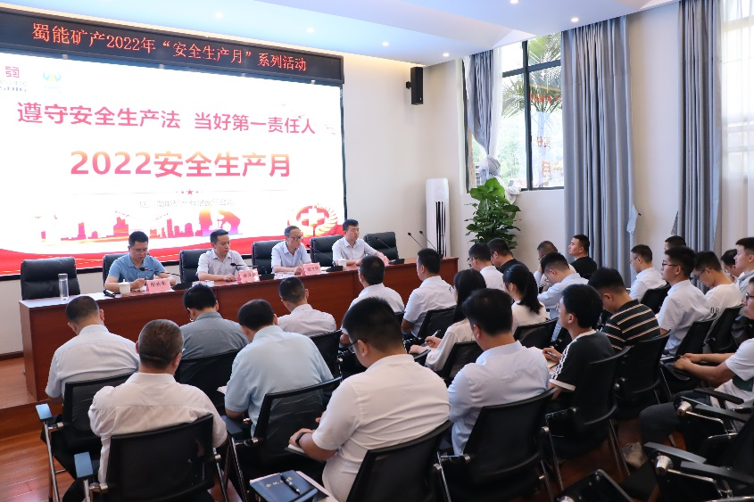 ? ? ? ?為貫徹國務(wù)院安委辦、應(yīng)急管理局、四川省安委辦關(guān)于開展2022年全國“安全生產(chǎn)月”活動相關(guān)要求,6月24日,蜀能礦產(chǎn)公司開展“安全生產(chǎn)月系列活動”,活動以“遵守安全生產(chǎn)法,當(dāng)好第一責(zé)任人”為主題,通過第一責(zé)任人安全倡議書宣讀、安全目標(biāo)責(zé)任書簽訂、消防演練、安全知識有獎競答等方式,向廣大干部職工宣傳安全知識,落實(shí)安全生產(chǎn)責(zé)任?;顒佑晒靖笨偨?jīng)理韓方建主持,領(lǐng)導(dǎo)班子及全體員工參加。