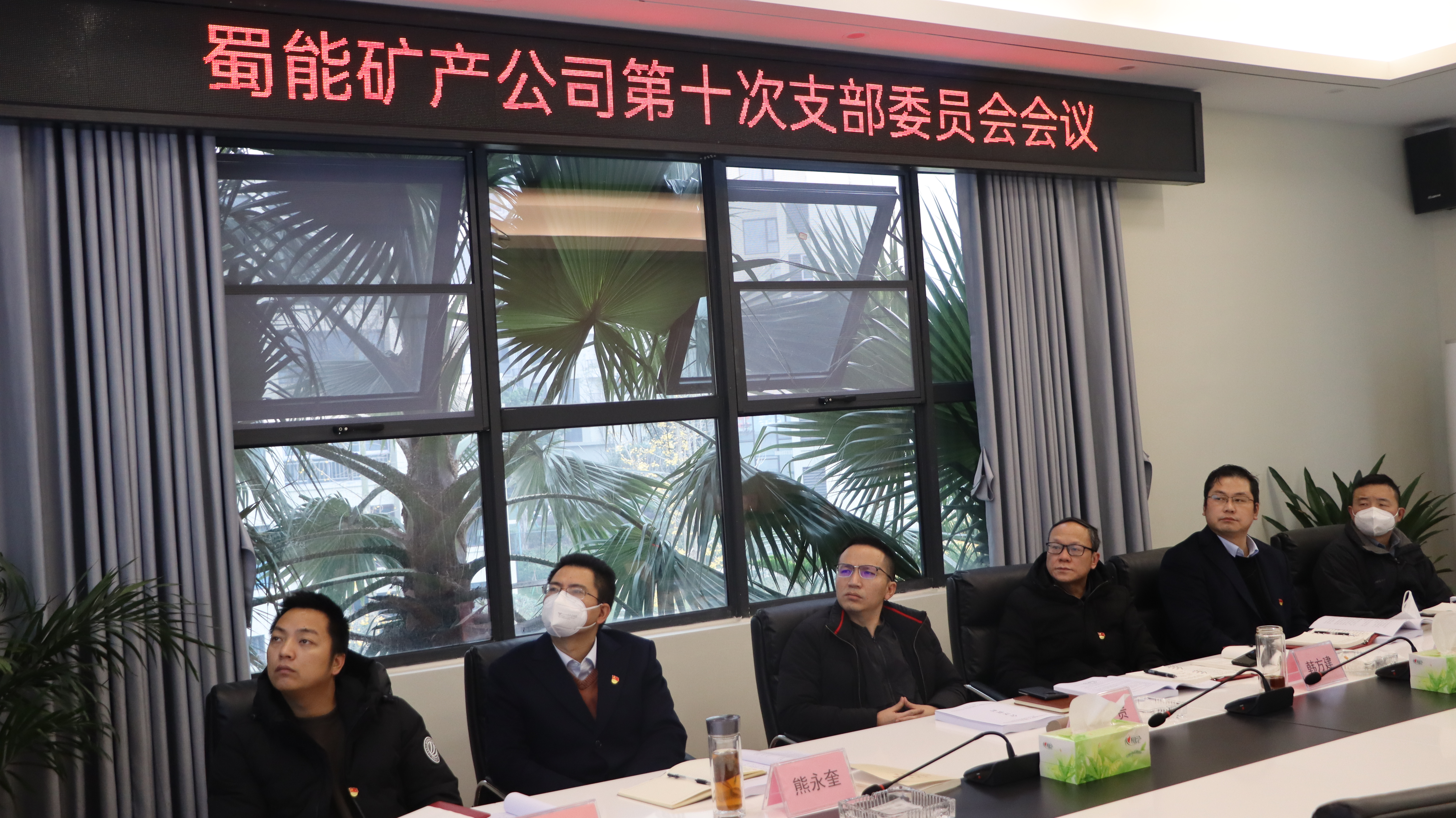 ? ? ? ?12月23日,中共四川蜀能礦產(chǎn)有限責(zé)任公司支部委員會(huì)召開(kāi)2022年第十次支委會(huì),會(huì)議由支部書(shū)記、董事長(zhǎng)、總經(jīng)理徐開(kāi)貴主持。會(huì)議專題學(xué)習(xí)《習(xí)近平關(guān)于社會(huì)主義精神文明建設(shè)論述摘編》,傳達(dá)學(xué)習(xí)2022年中央經(jīng)濟(jì)工作會(huì)議會(huì)議精神;聽(tīng)取2022年第9次支部委員會(huì)會(huì)議議題落實(shí)情況的匯報(bào);研究審議公司《支部委員會(huì)黨建工作責(zé)任制實(shí)施辦法》、2022年度評(píng)先推優(yōu)活動(dòng)等議題。