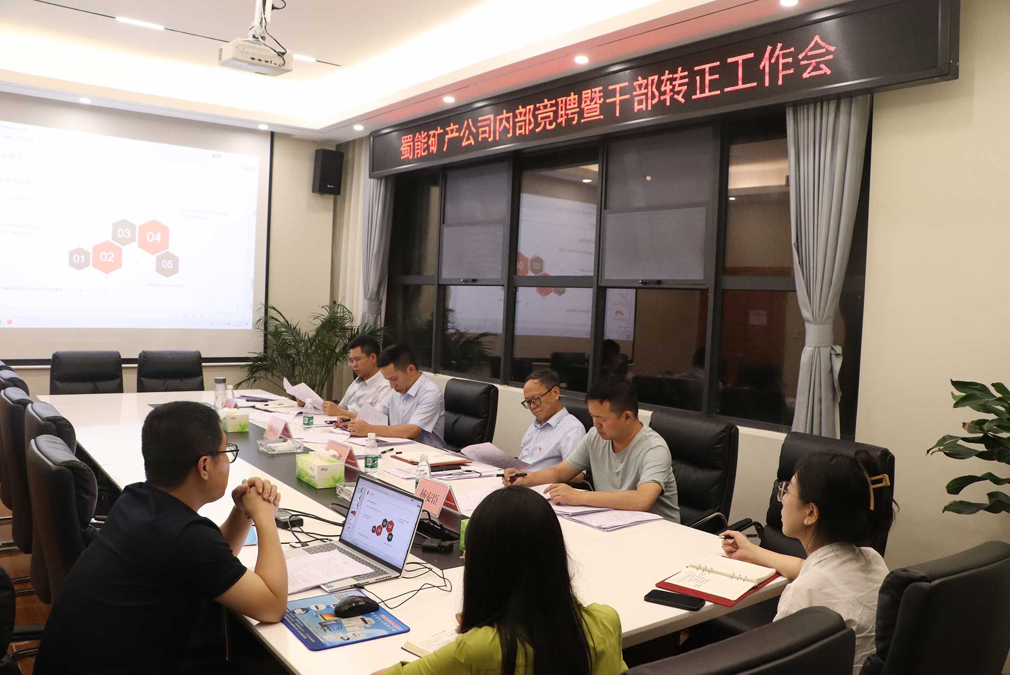 根據(jù)《蜀能礦產(chǎn)2023年部分中層正職(含總助級)管理崗位內(nèi)部競聘工作方案》的流程要求,蜀能礦產(chǎn)于6月27日召開部分中層崗位競聘面試答辯會,會議由公司黨支部書記、董事長、總經(jīng)理徐開貴主持并擔(dān)任評委會組長,公司領(lǐng)導(dǎo)韓方建、熊永奎、楊安臣參會并擔(dān)任評委。