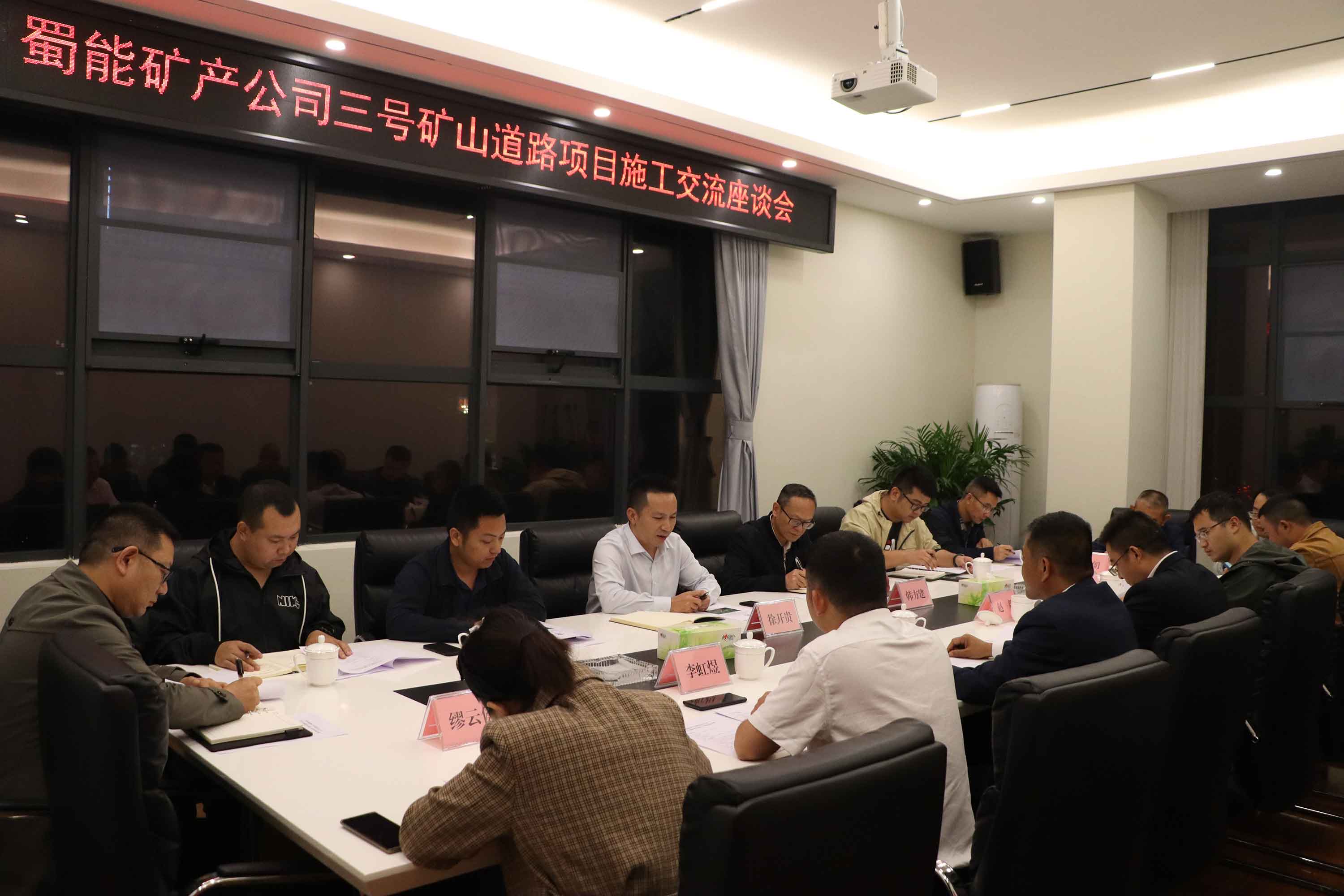10月11日,蜀能礦產(chǎn)與路橋集團(tuán)三分公司在馬邊舉行三號(hào)礦山道路項(xiàng)目施工交流座談會(huì),雙方就項(xiàng)目施工技術(shù)方案、人員組織、安全環(huán)保工作等方面進(jìn)行深入溝通交流。蜀能礦產(chǎn)董事長(zhǎng)、黨支部書記、總經(jīng)理徐開貴,常務(wù)副總經(jīng)理韓方建,路橋集團(tuán)三分公司黨委書記夏勇及雙方相關(guān)部門負(fù)責(zé)同志參加座談。