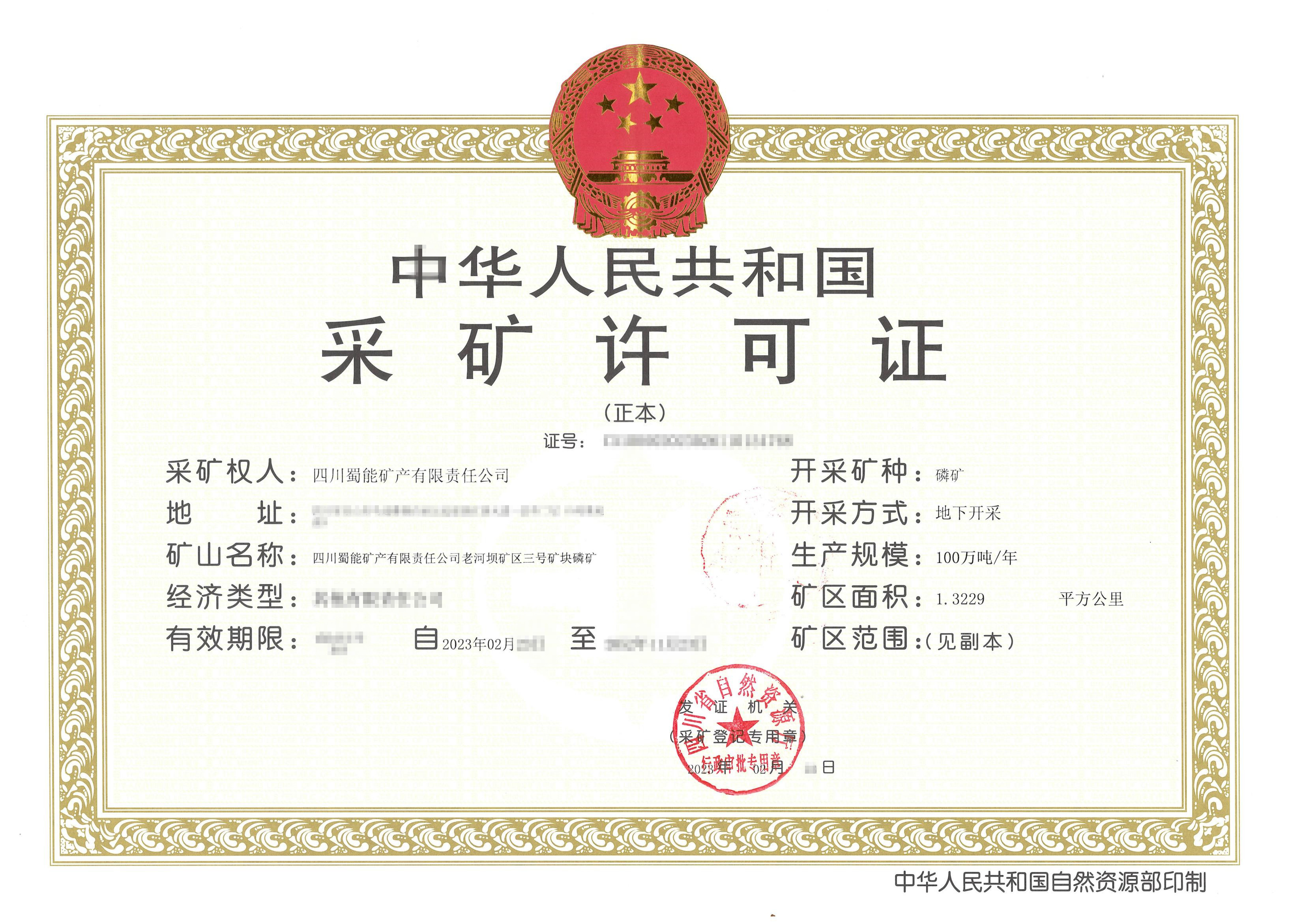 歷時360天,蜀能礦產(chǎn)公司于2023年3月20日取得老河壩礦區(qū)三號礦塊磷礦采礦許可證,這標(biāo)志著公司三號礦山探轉(zhuǎn)采工作在不到一年時間內(nèi)順利完成。目前,礦山設(shè)計及建設(shè)準(zhǔn)備工作等正緊鑼密鼓推進中。